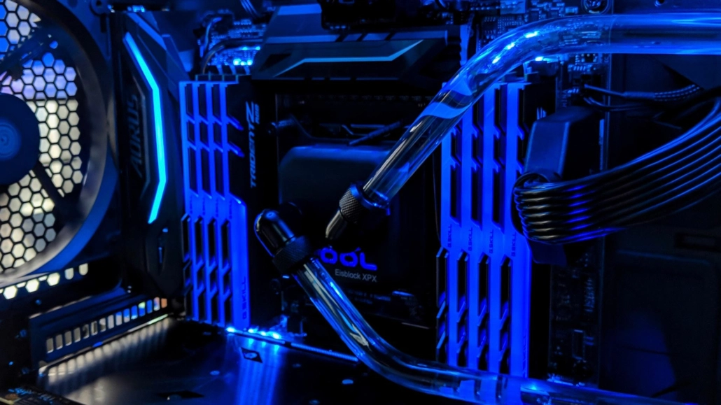 Finally, we’ve also build a state of the art workstation PC to feature Intel’s upcoming revision of their 18-core High-End-Desktop processor. With a custom water cooling loop and a sleek professional design, the system became an attraction on its own.